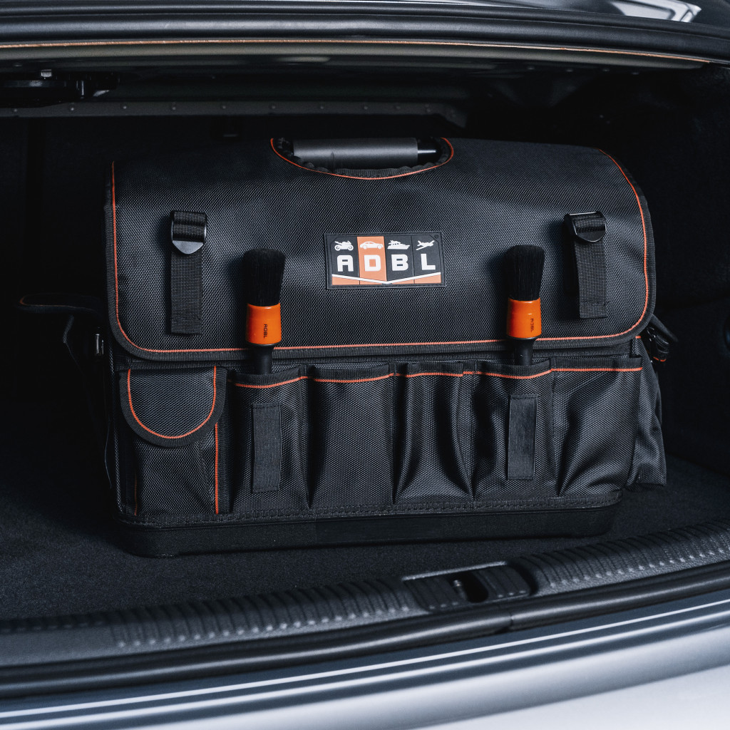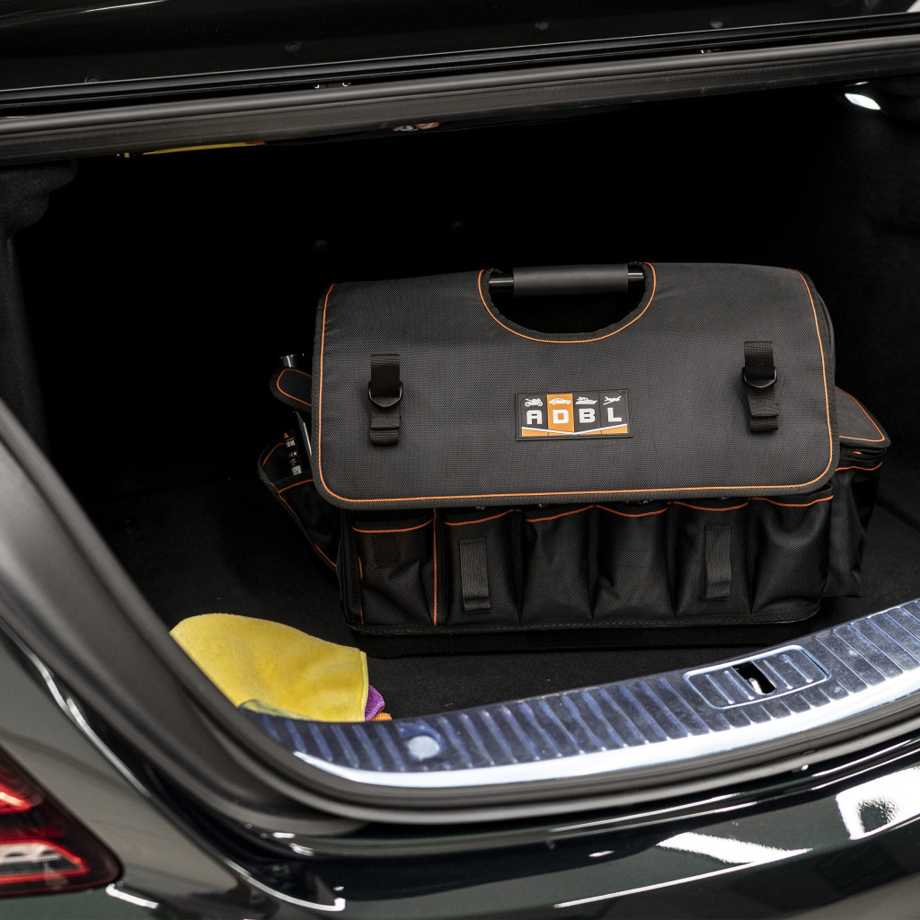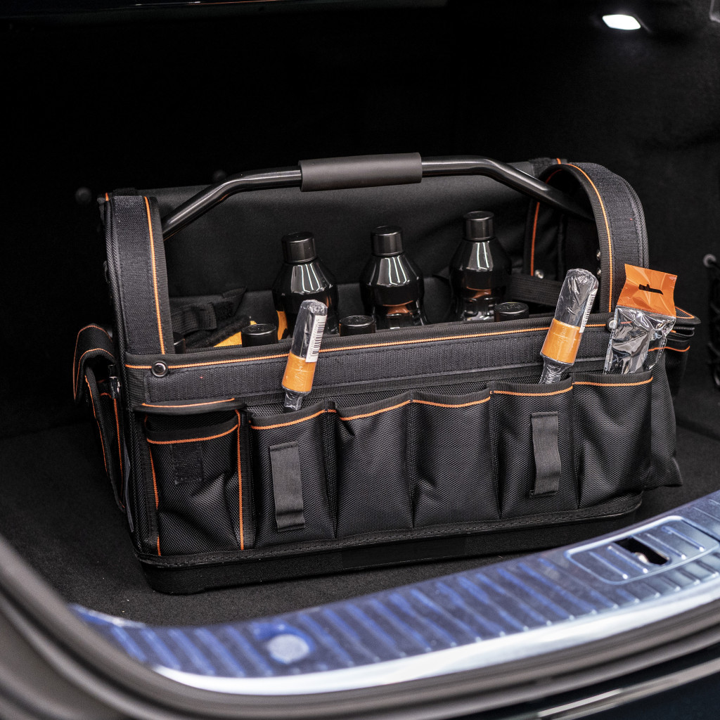 Kiváló minőségű autókozmetikai táska, 100% poliészterből, a legmodernebb technológiákkal készült. Több termék szállítását teszi lehetővé, a moduláris rekeszek lehetővé teszik a táska belsejét a saját igényeinkhez igazítani.