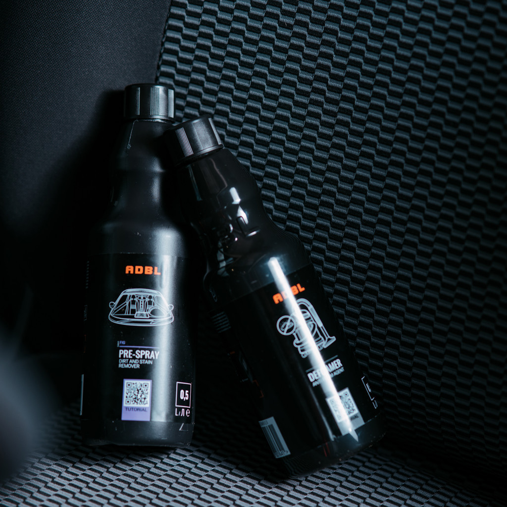 Az ADBL Pre Spray a kárpittisztító anyagok legújabb generációját képviseli. Hatékonyan távolítja el a zsíros, szerves és mindennapi szennyeződéseket a kárpitokból. Koncentrációját a szennyezettség mértékétől függően kell megválasztani. Magas koncentrációban öblítőszerként is használható a korábban feloldott szennyeződések eltávolítására, és a száradás gyorsítására. Kellemes illatot hagy maga után.