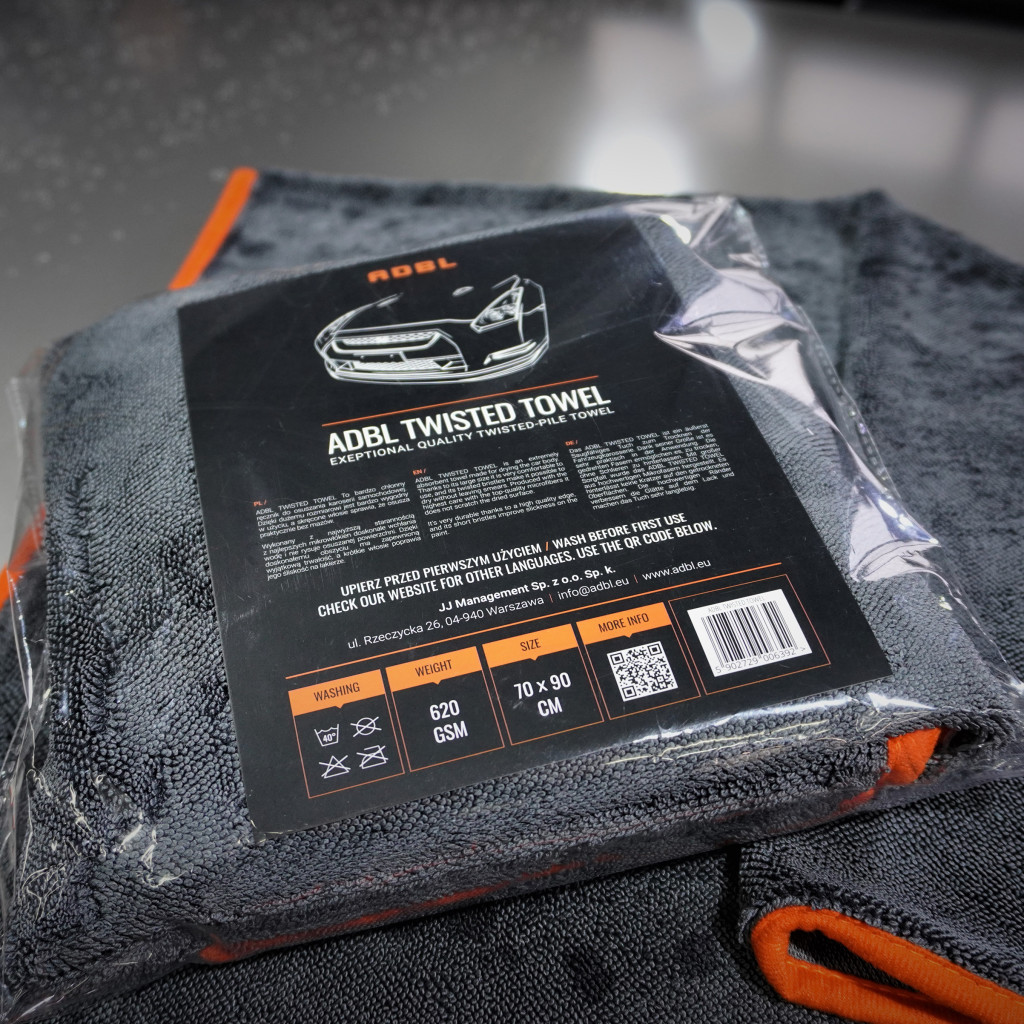 A kiváló minőségű szálak egyedi szövéssel, tömör szegéllyel és nagy mérettel kombinálva az ADBL Twisted Towel-t rendkívül nedvszívóvá teszik, csíkok nélkül szárítja a felületet, biztonságosan használható, nem karcol, kíméli a karosszériát. A speciális szálszerkezetével sikerült azt elérni, hogy 620 GSM súlyával is képes annyi vizet felszívni mint az 1000 GSM fölötti vetélytársai, viszont használata sokkal egyszerűbb.