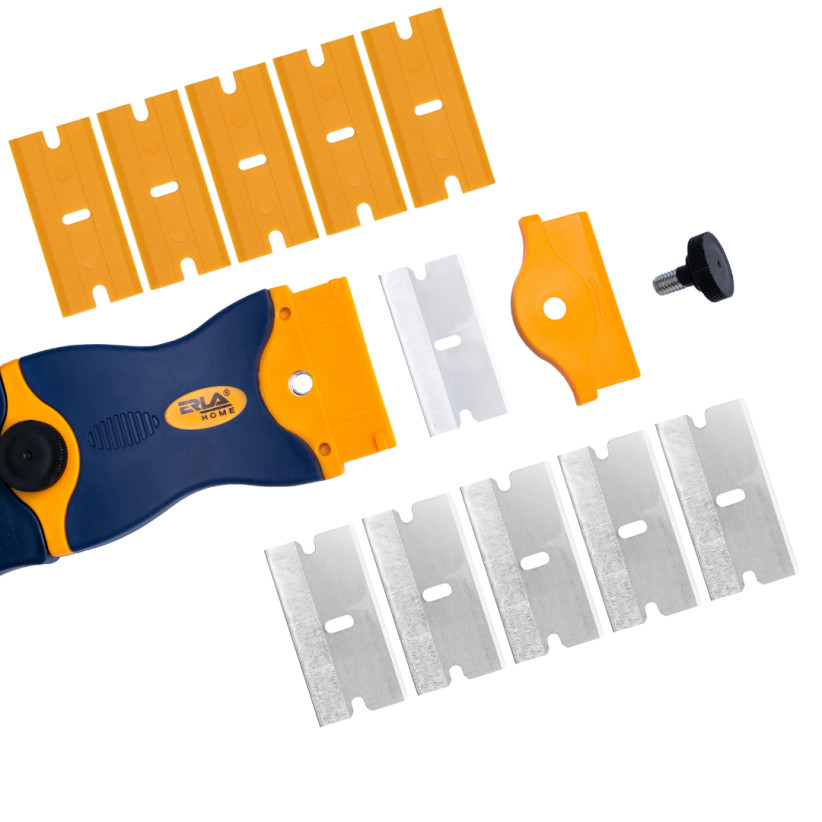 A kaparó cserélhető rozsdamentes acél és műanyag pengékkel van felszerelve, így mindig a felület típusához és a szennyeződés mértékéhez igazítható: