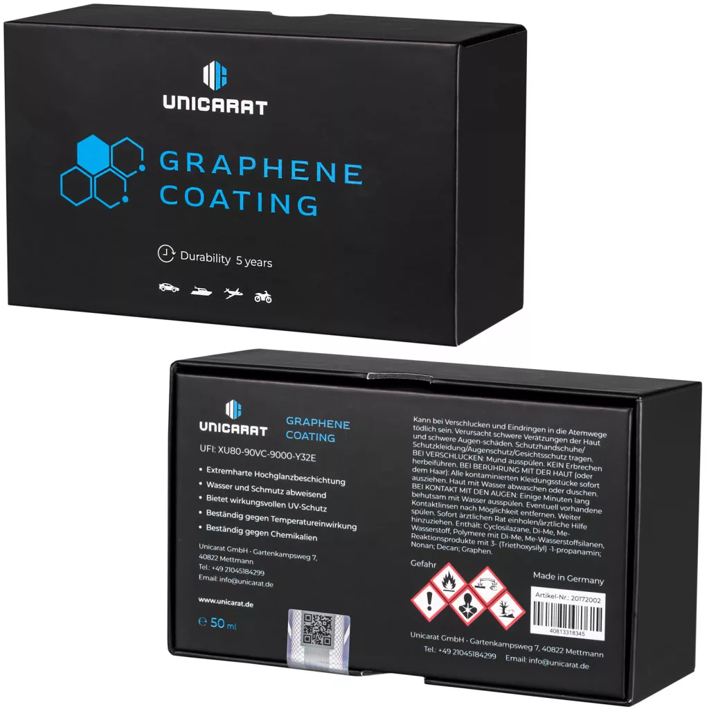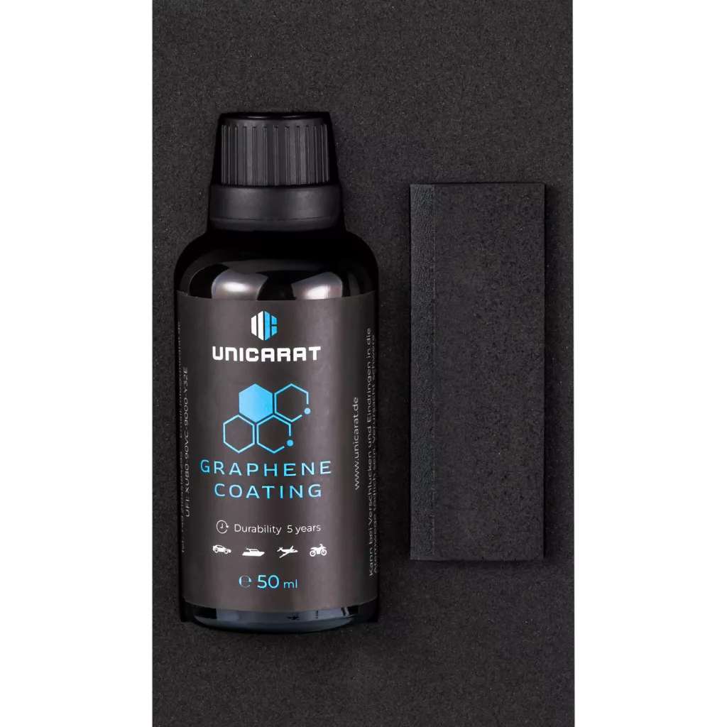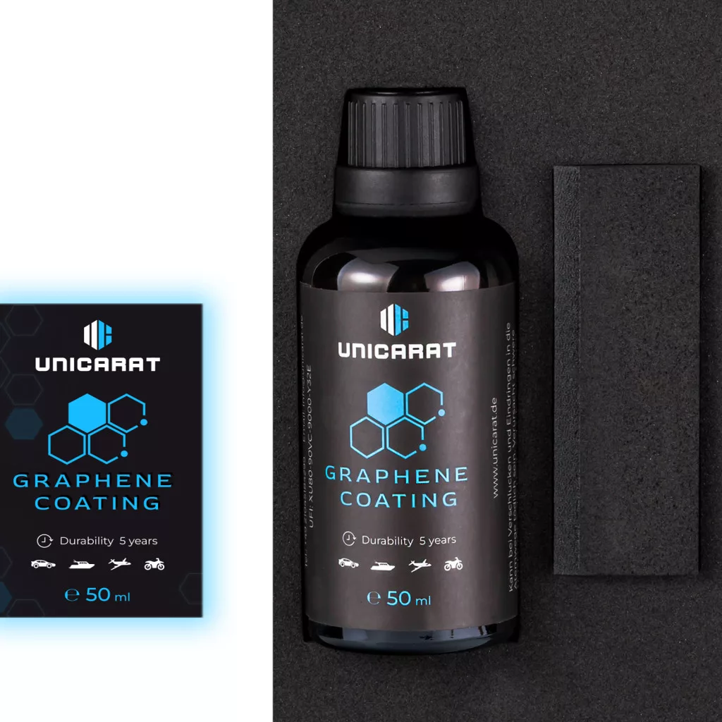Az Unicarat Graphene Bevonattal garantáljuk a legkeményebb bevonatot, elképesztő hidrofób hatást, könnyen tisztítható felületet, egyszerű felvitelt és ragyogó fényt!